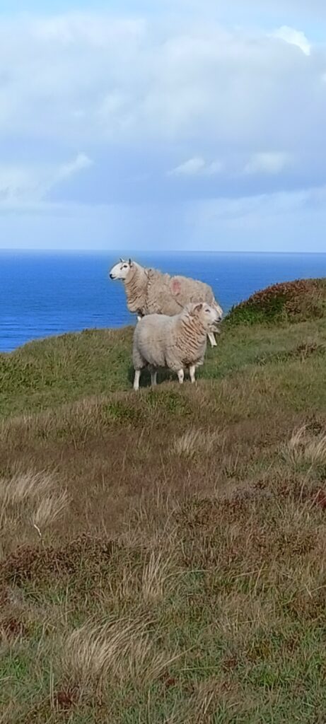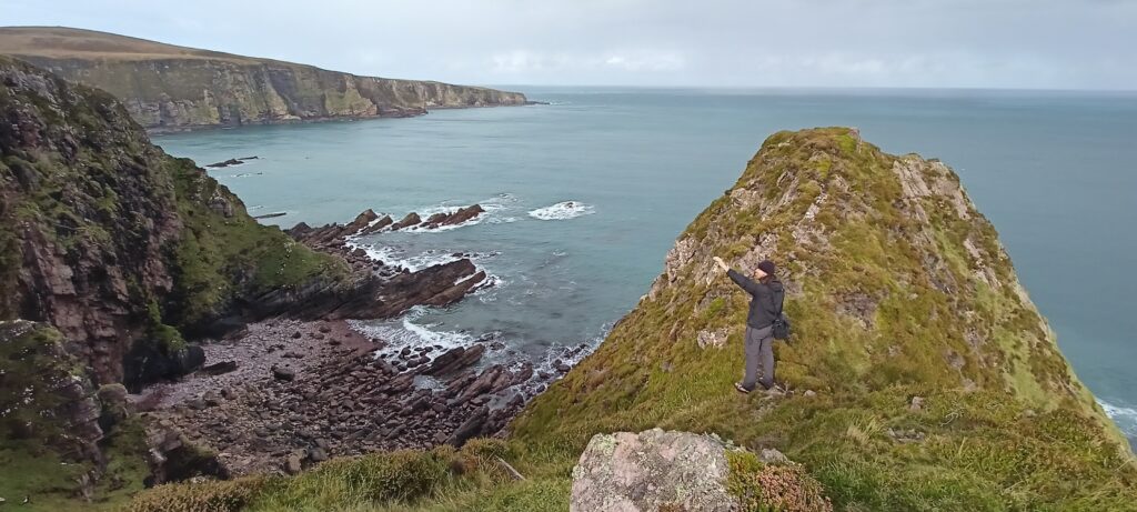 Um die Mittagszeit entschieden wir einen Fußmarsch zum Old Man of Stoer zu wagen, der gemessen an der Landkarte eigentlich gar nicht so weit weg sein sollte. Hmm, war er aber dann doch. Wir waren noch nicht einmal ne halbe Stunde gelaufen, da hatte Steffen schon mehr Wasser in seinen Schuhen als im nahegelegenen Loch. Wir machten also lieber auf halber Strecke kehrt und kamen so in den Genuss bei schönstem Wetter an der Steilküste entlang laufen zu können.